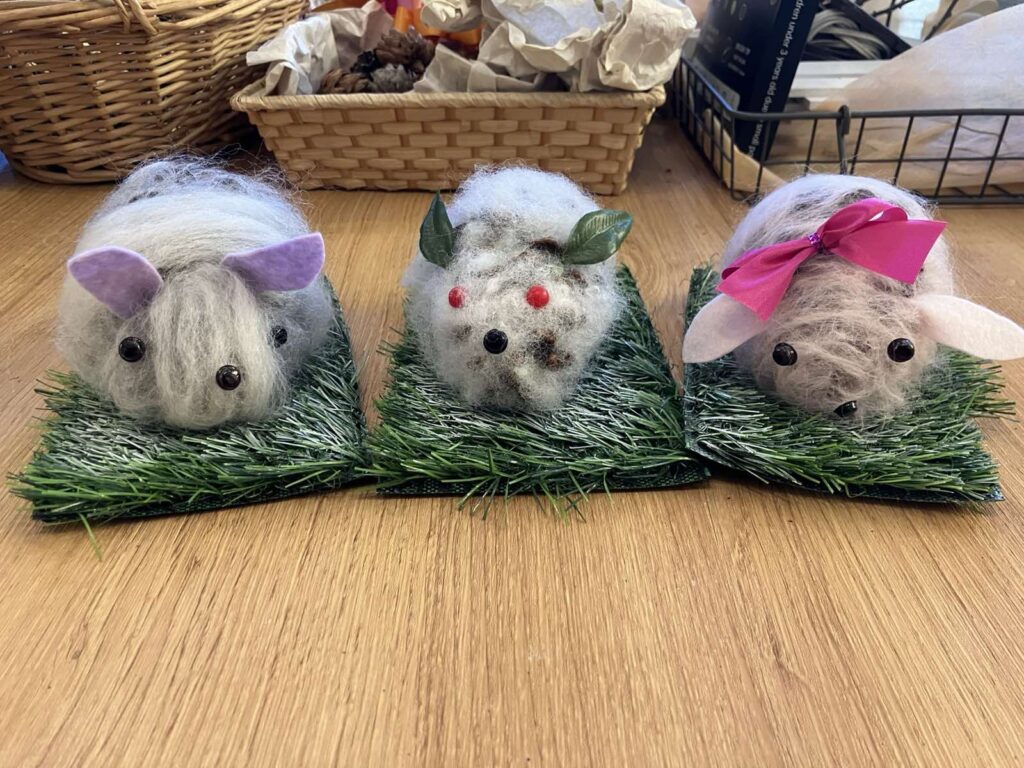 園内で採れた松ぼっくりに、羊毛フェルトを使って、簡単に、かわいいうさちゃんができます