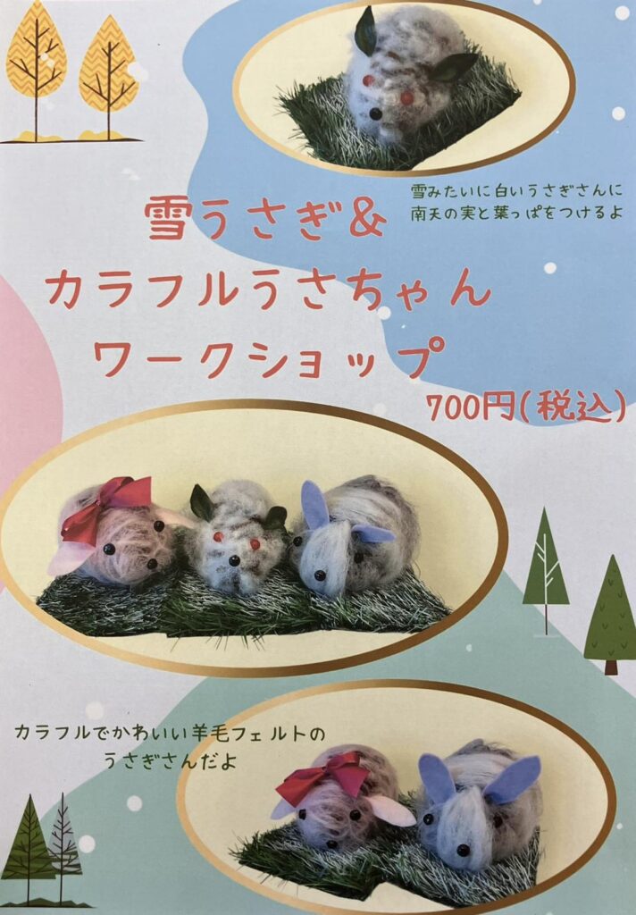 ショップで開催の動物ワークショップ(雪ウサギ&カラフルうさちゃん)