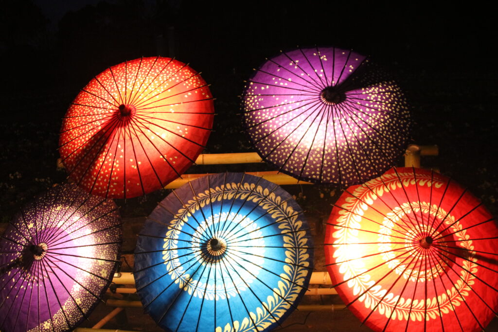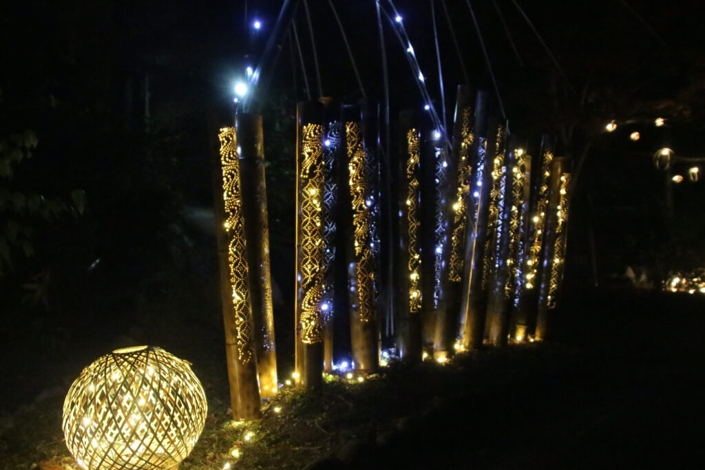 今年も竹灯りや和傘が園内やモミジ谷を彩ります。