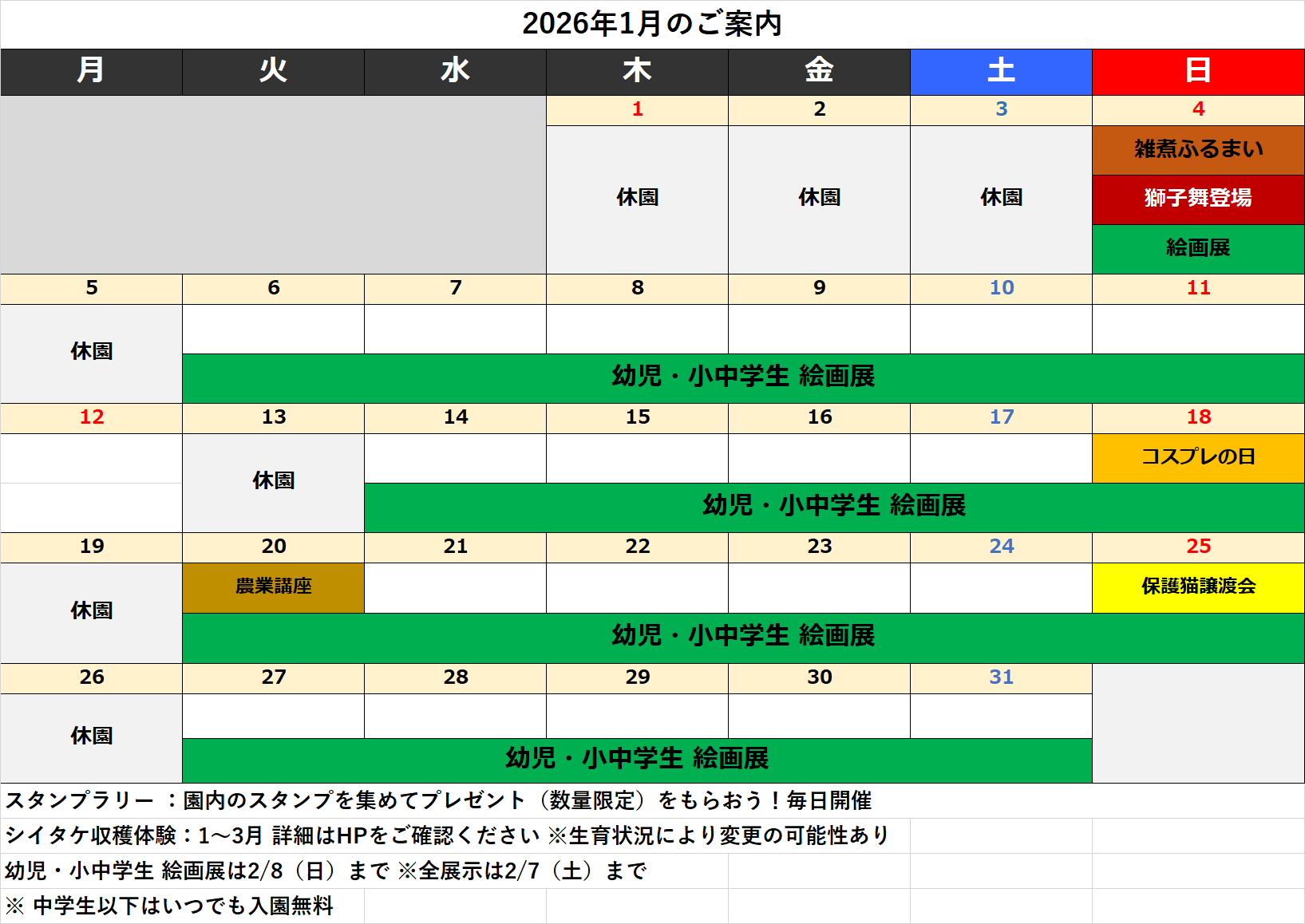 1月のイベントカレンダー