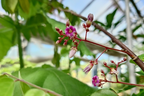 スターフルーツと言ったほうが馴染みがあると思います。花の後には黄色くて切り口が星形の実ができます。