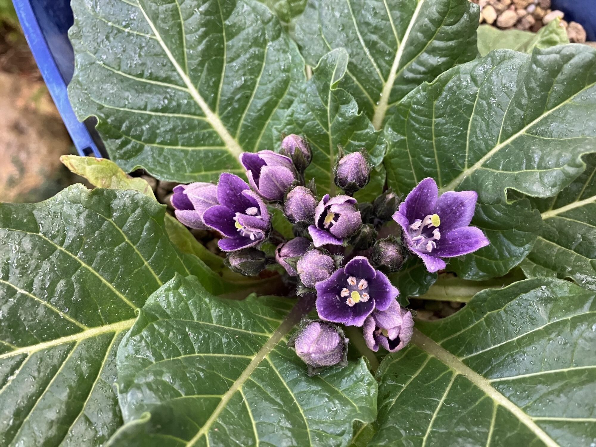 見上げるほどの高い場所で、威風堂々とメタリックな輝きを放つ花は、皇帝の名にふさわしいたたずまいです。