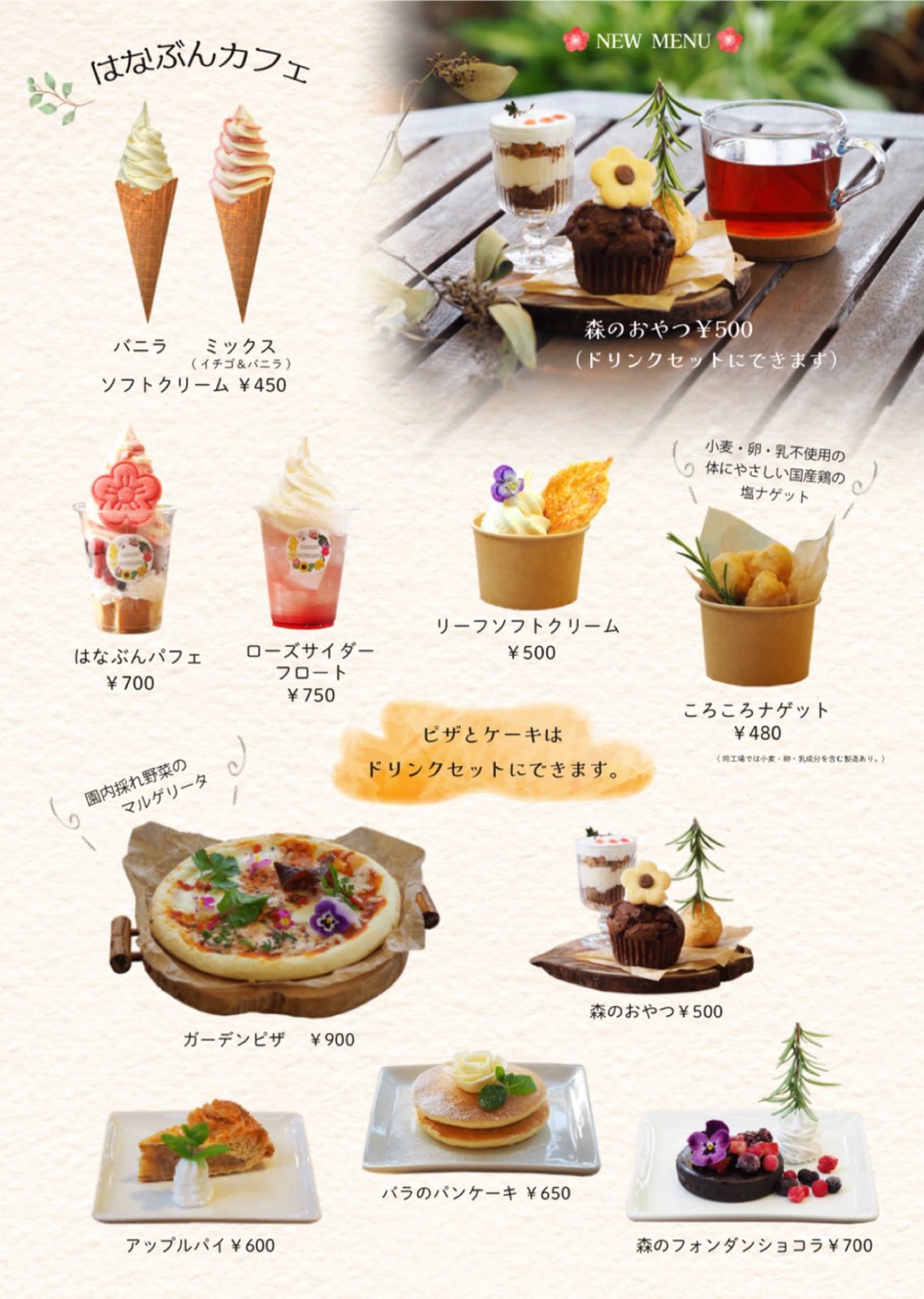 ※ピザとケーキはドリンクセットにできます。(ドリンク100円引き)