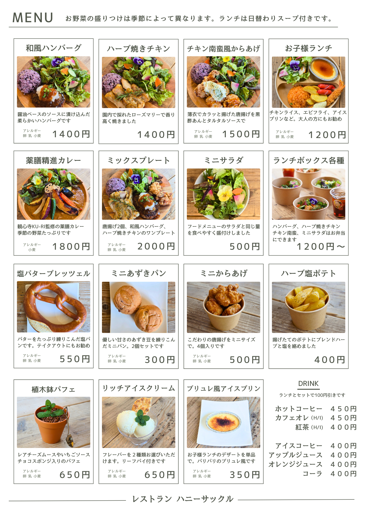お子様から大人まで楽しめるランチメニューやドリンクメニューをご用意しております。