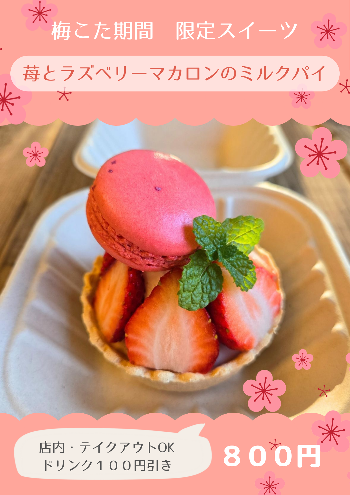 ・【梅こた限定】苺とラズベリーマカロンのミルクパイ ¥800
