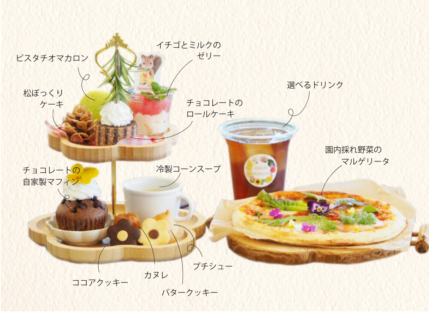 ※ピザとケーキはドリンクセットにできます。(ドリンク100円引き)